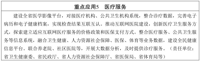 加快数字医疗建设。推进数字公共卫生建设,优化医疗资源配置,推动医疗机构与公共卫生机构数据共享、业务协同,构建多点触发的数字预警机制,提升传染病疫情和突发公共卫生事件早期监测预警能力。融合居民运动、心理健康等各类健康数据,提供全生命周期信息服务。规范建设互联网医院,推进远程诊疗、远程手术、互联网健康咨询等广泛使用,推动高水平医疗机构与基层医疗机构开展在线医疗合作。加强数字医保建设,推广医保电子凭证应用。推动电子病历、电子健康档案在长三角区域互通互认。(责任单位:省卫生健康委、省医保局等)