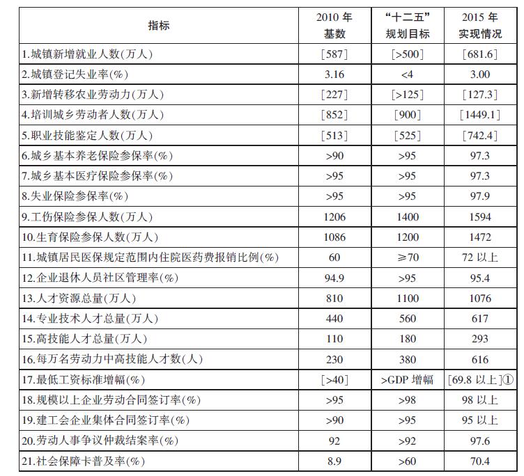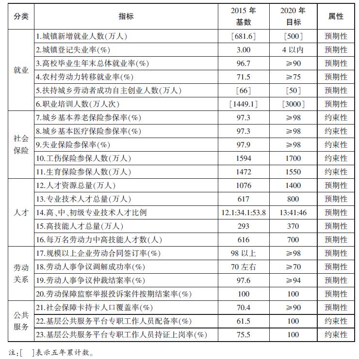 表2 “十三五”人力资源和社会保障发展主要指标
