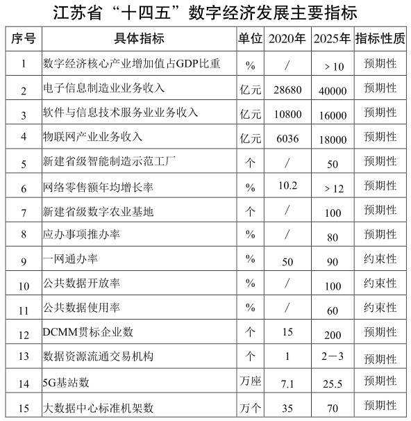 到2025年,数字经济强省建设取得显着成效,数字经济核心产业增加值占地区生产总值比重超过10%,数字经济成为江苏高质量发展的重要支撑。
